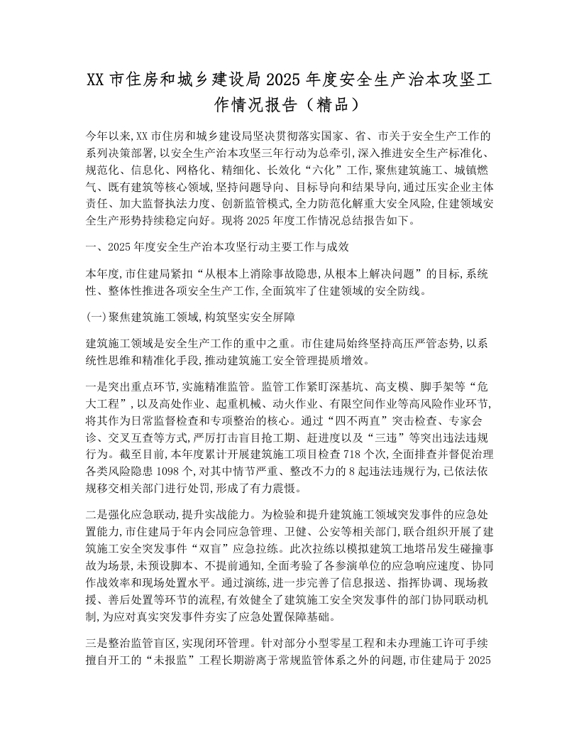 XX市住房和城乡建设局2025年度安全生产治本攻坚工作情况报告(精品)