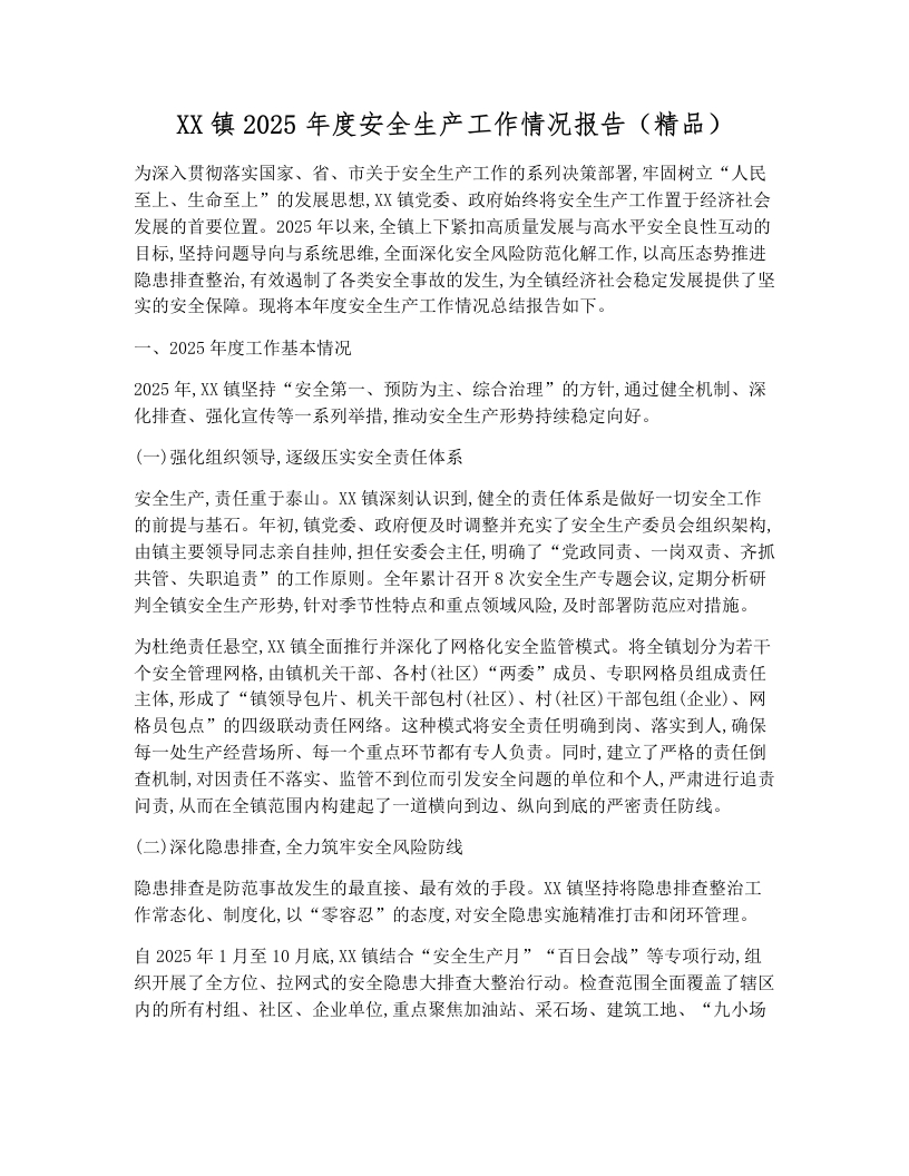 首页安全文档综合XX镇2025年度安全生产工作情况报告(精品)