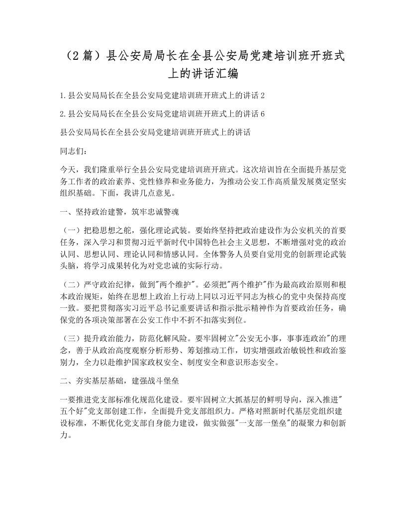 (2篇)县公安局局长在全县公安局党建培训班开班式上的讲话汇编