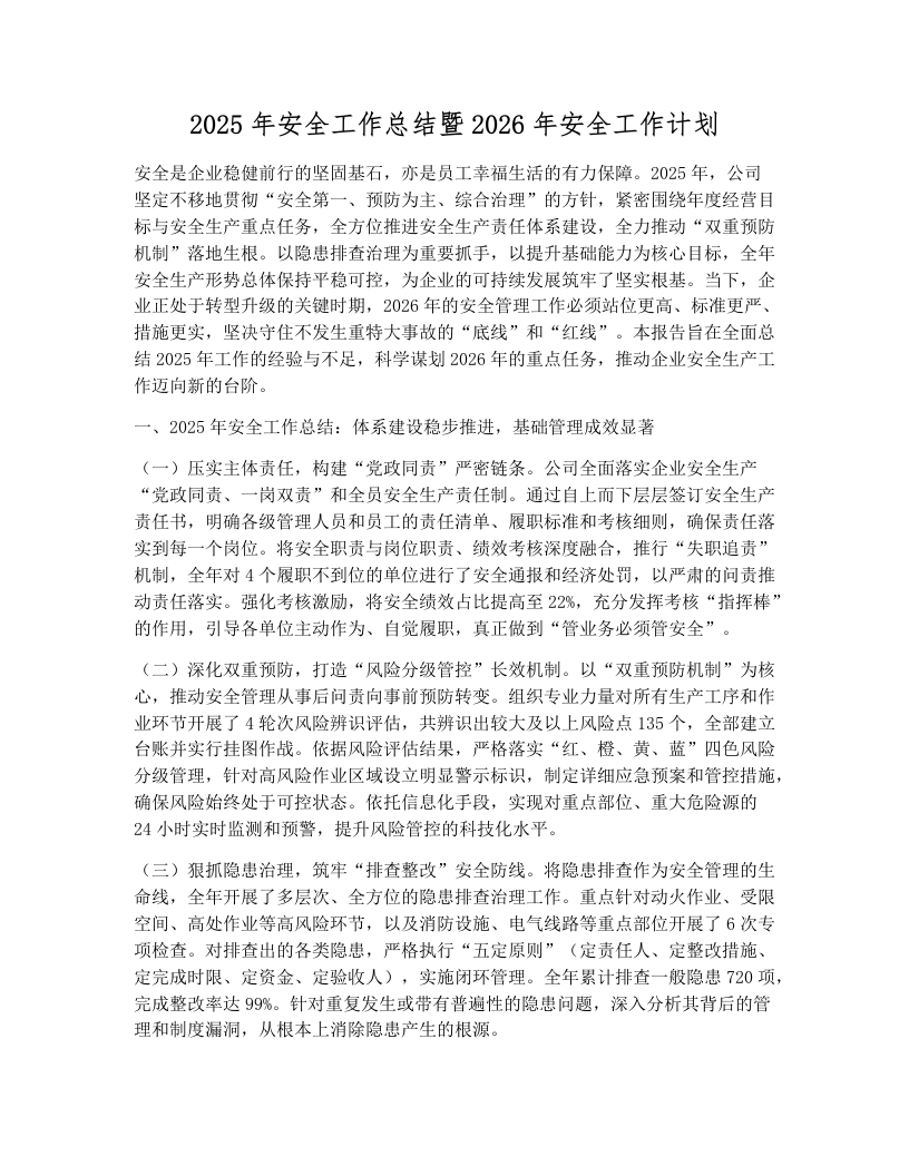 首页安全文档综合2025年安全工作总结暨2026年安全工作计划