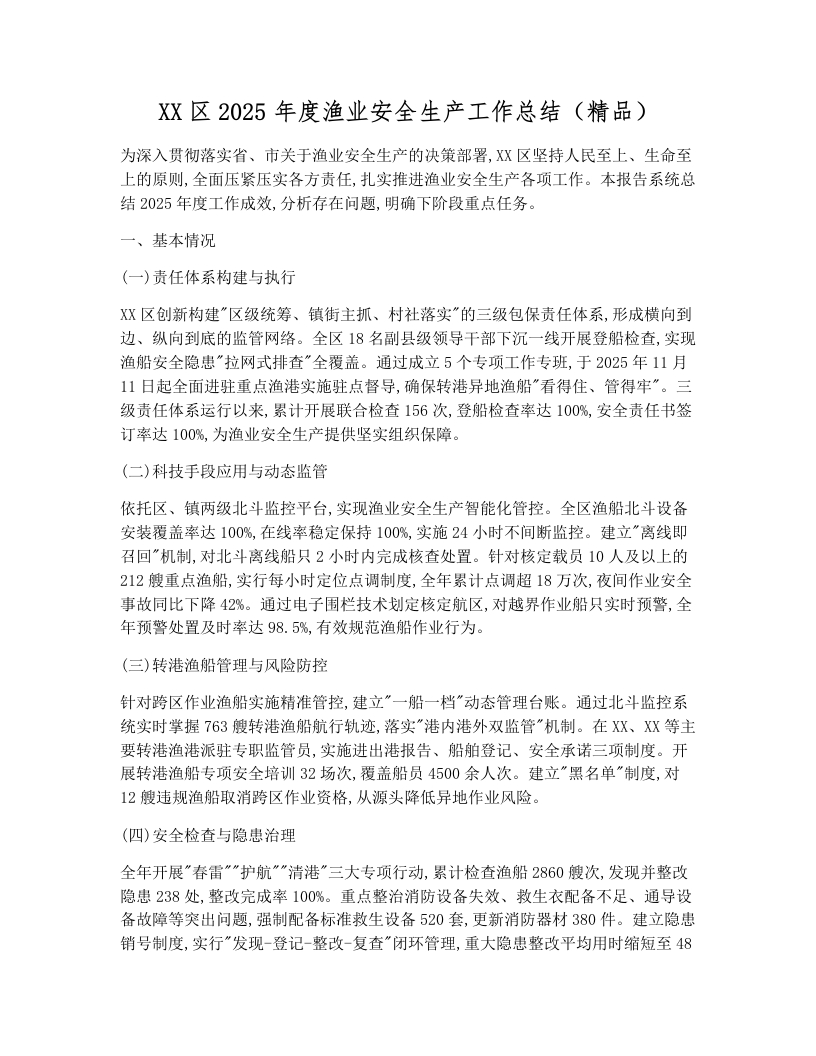 首页安全文档综合XX区2025年度渔业安全生产工作总结(精品)