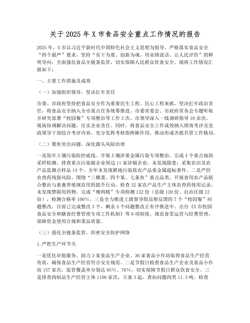 关于2025年X市食品安全重点工作情况的报告