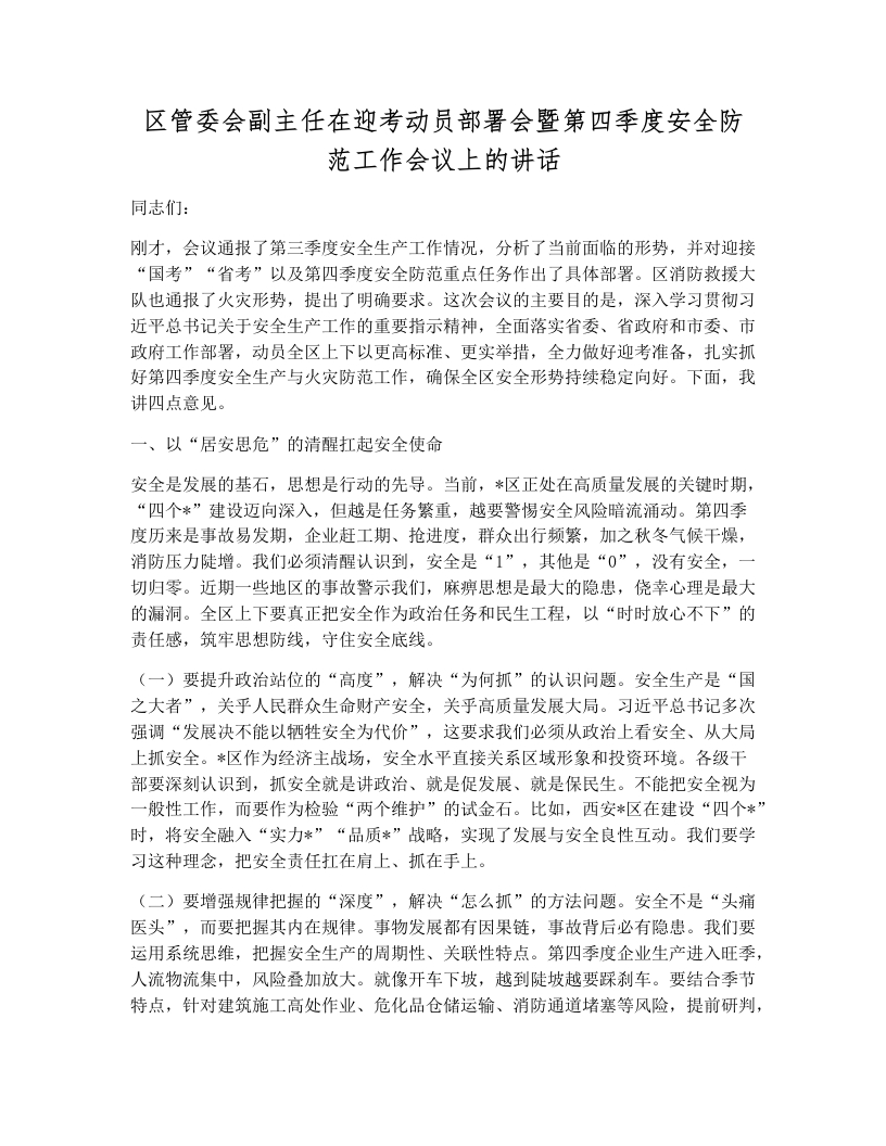 区管委会副主任在迎考动员部署会暨第四季度安全防范工作会议上的讲话