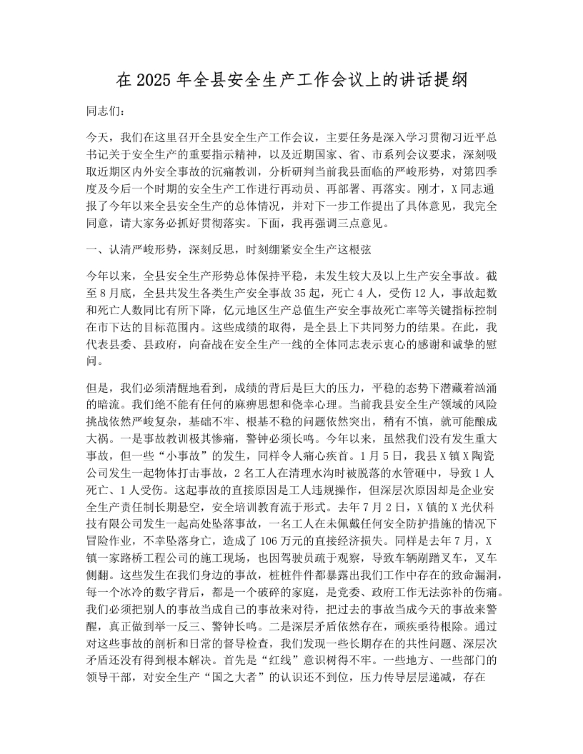首页安全文档综合在2025年全县安全生产工作会议上的讲话提纲