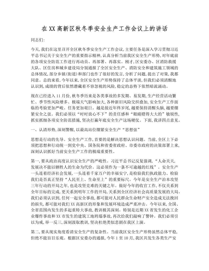 在XX高新区秋冬季安全生产工作会议上的讲话