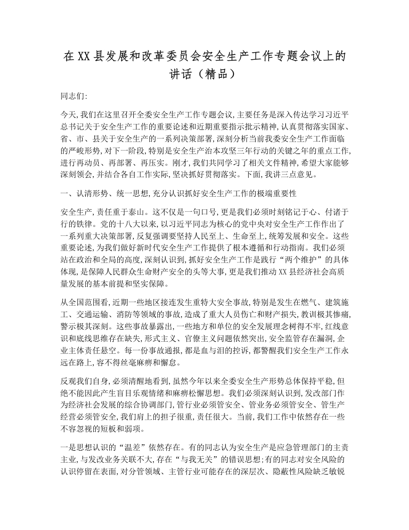 在XX县发展和改革委员会安全生产工作专题会议上的讲话(精品)