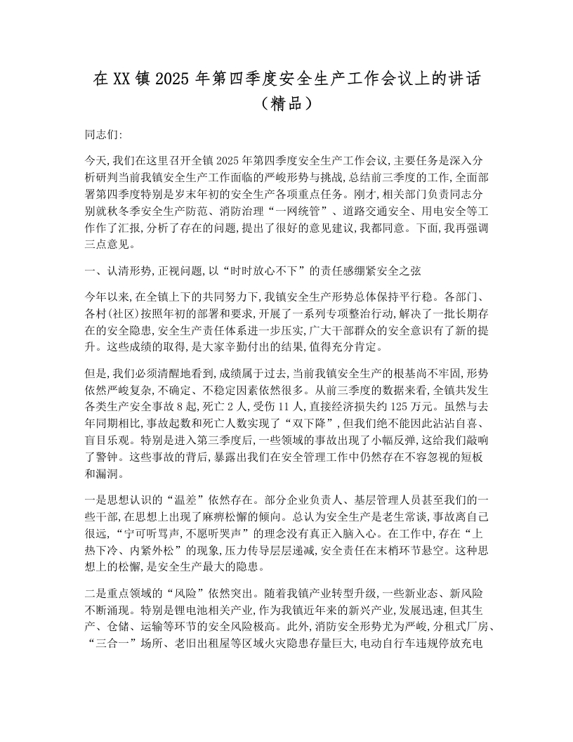 在XX镇2025年第四季度安全生产工作会议上的讲话(精品)
