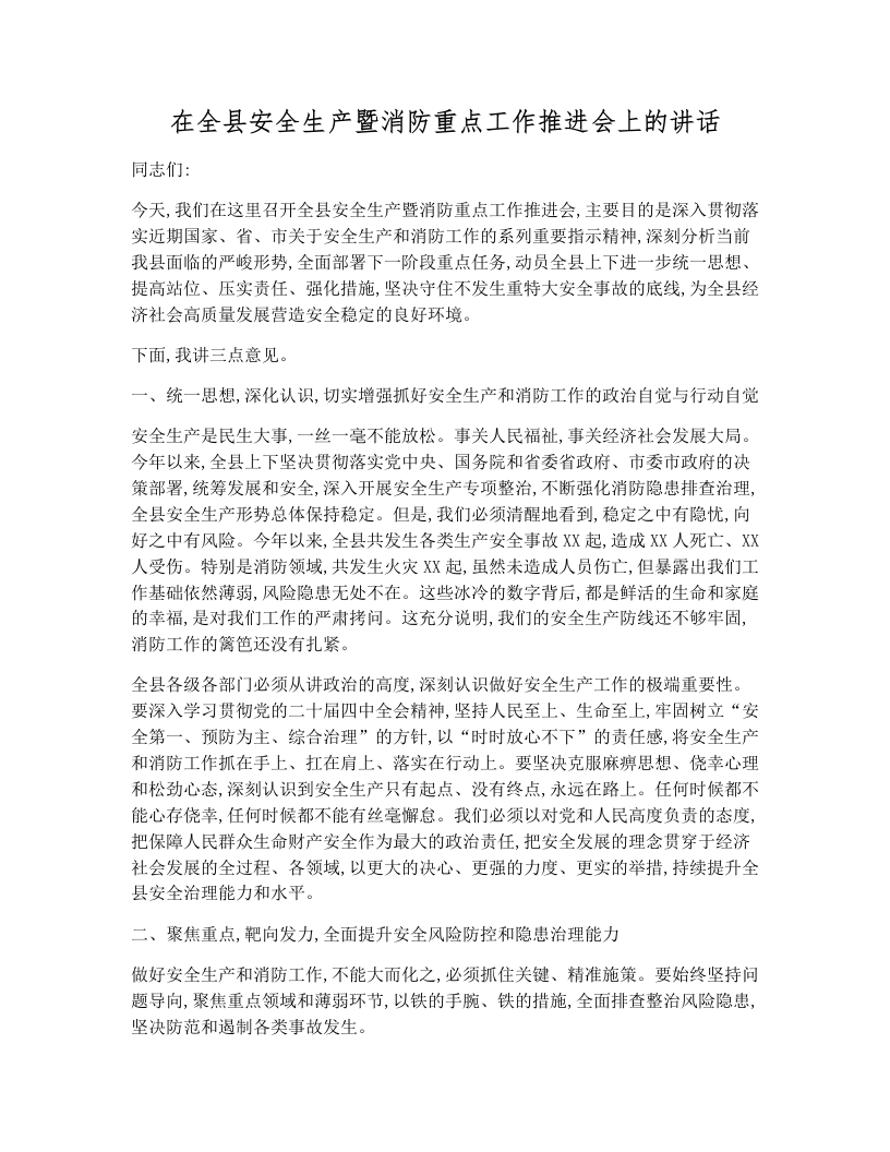 首页安全文档综合在全县安全生产暨消防重点工作推进会上的讲话