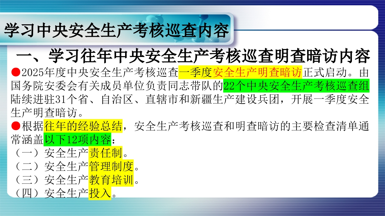 首页安全课件综合课件往年中央安全生产考核巡查明查暗访内容