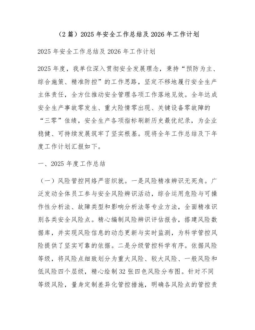 首页安全文档综合(2篇)2025年安全工作总结及2026年工作计划