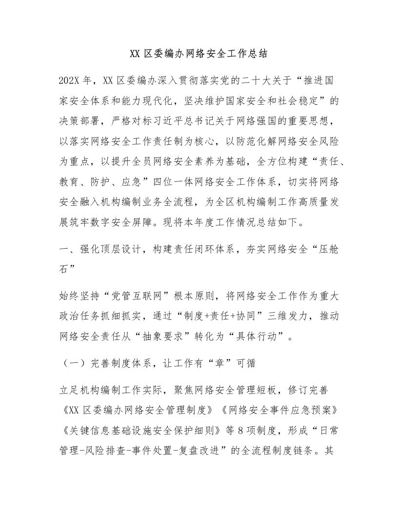 XX区委编办网络安全工作总结