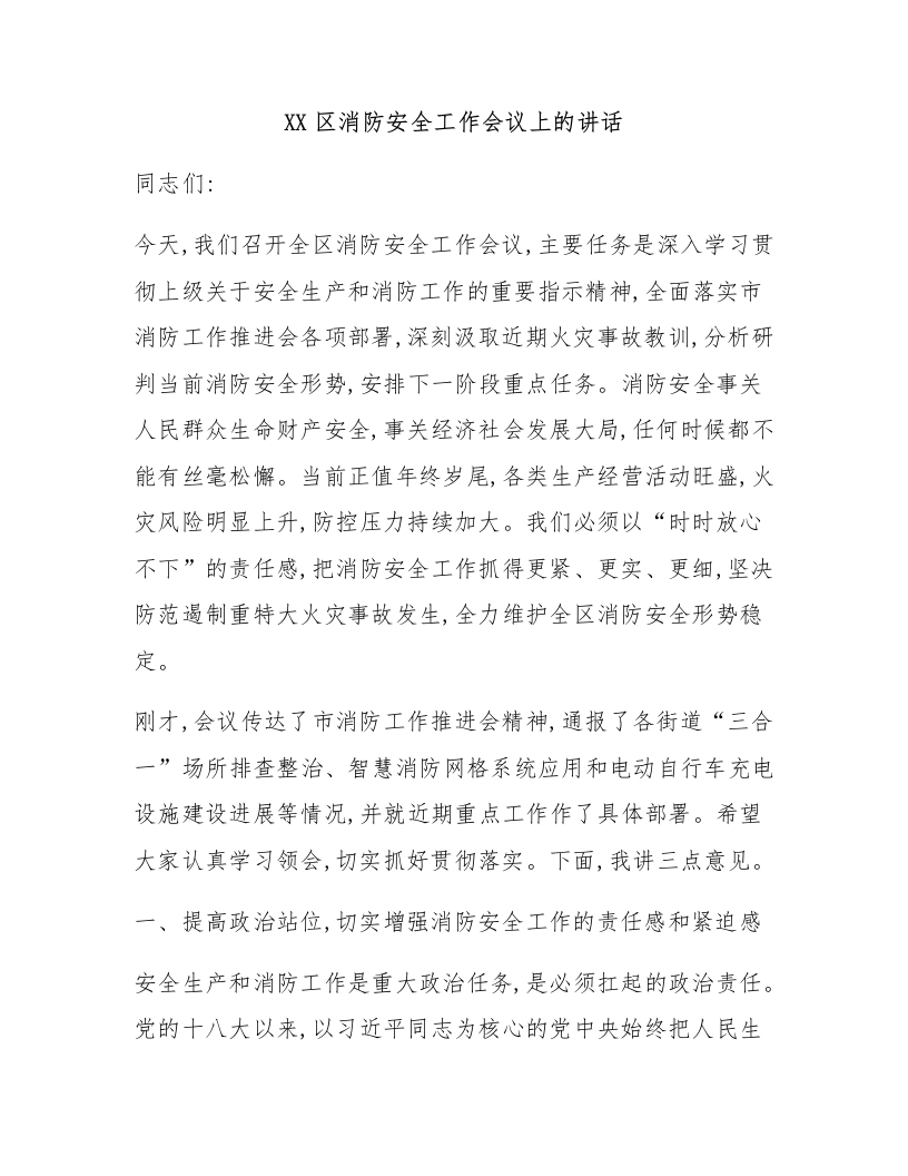 首页安全文档综合XX区消防安全工作会议上的讲话