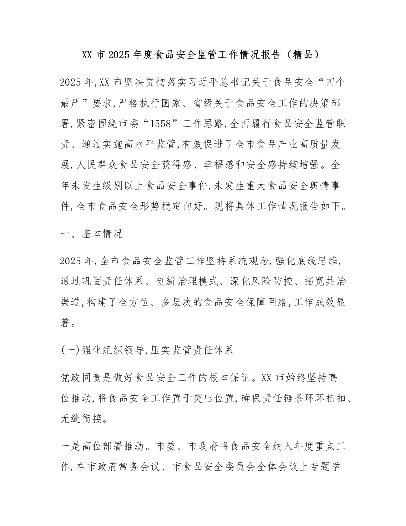 首页安全文档综合XX市2025年度食品安全监管工作情况报告(精品)