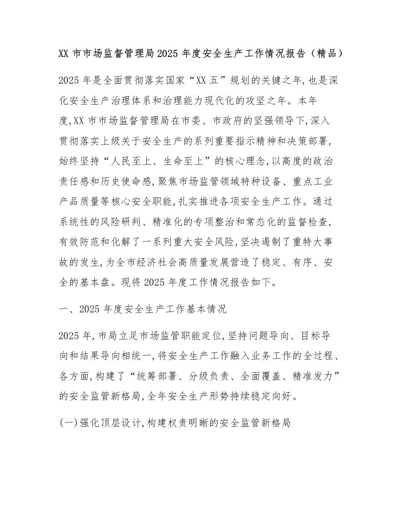 XX市市场监督管理局2025年度安全生产工作情况报告(精品)
