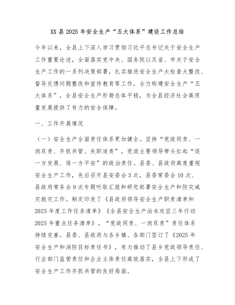 首页安全文档综合XX县2025年安全生产“五大体系”建设工作总结