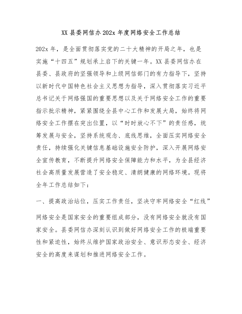 首页安全文档综合XX县委网信办202x年度网络安全工作总结