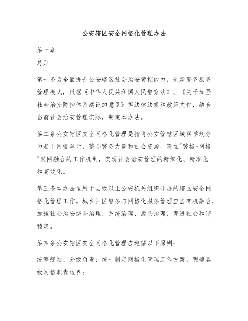 首页安全文档综合公安辖区安全网格化管理办法