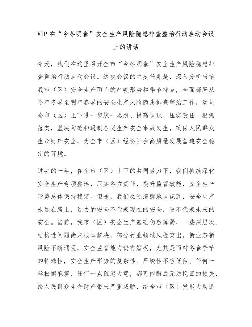 在“今冬明春”安全生产风险隐患排查整治行动启动会议上的讲话