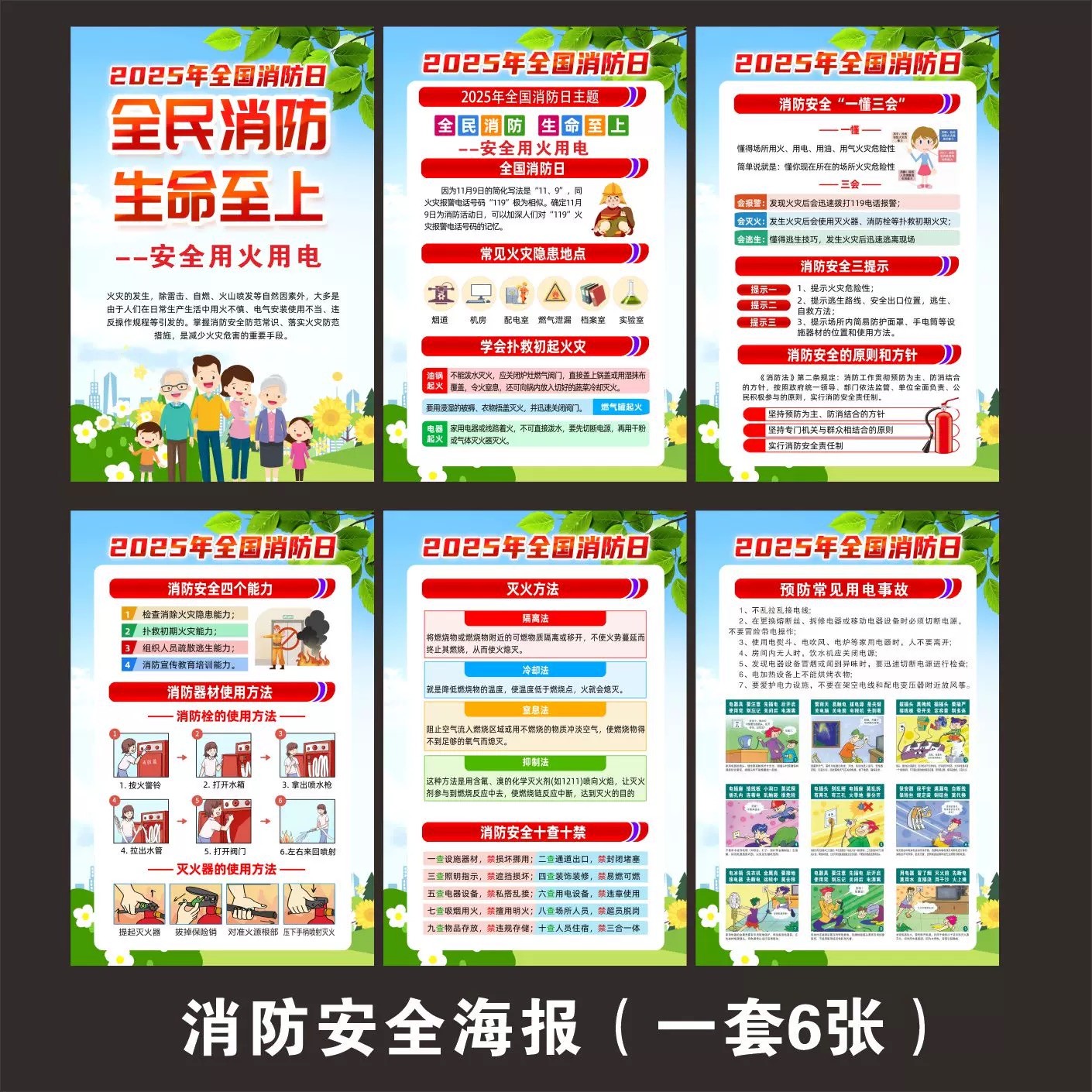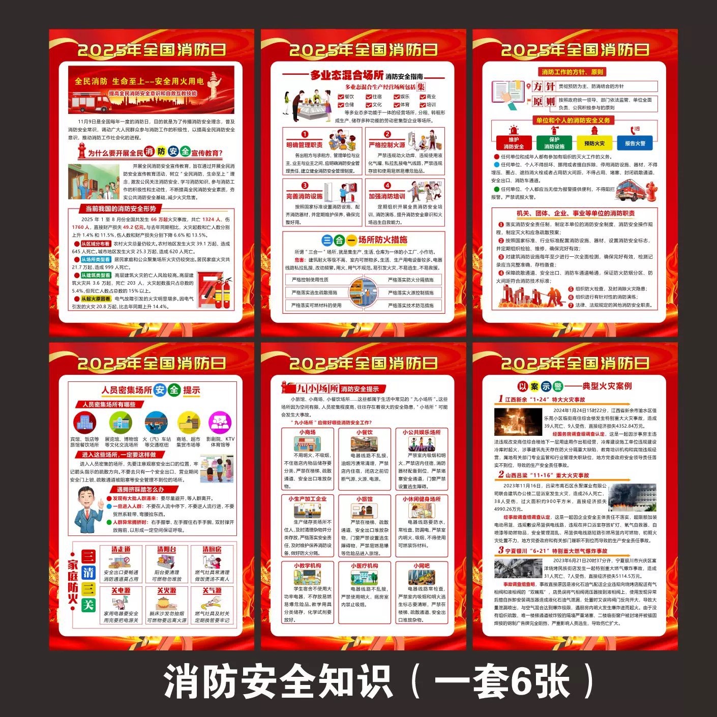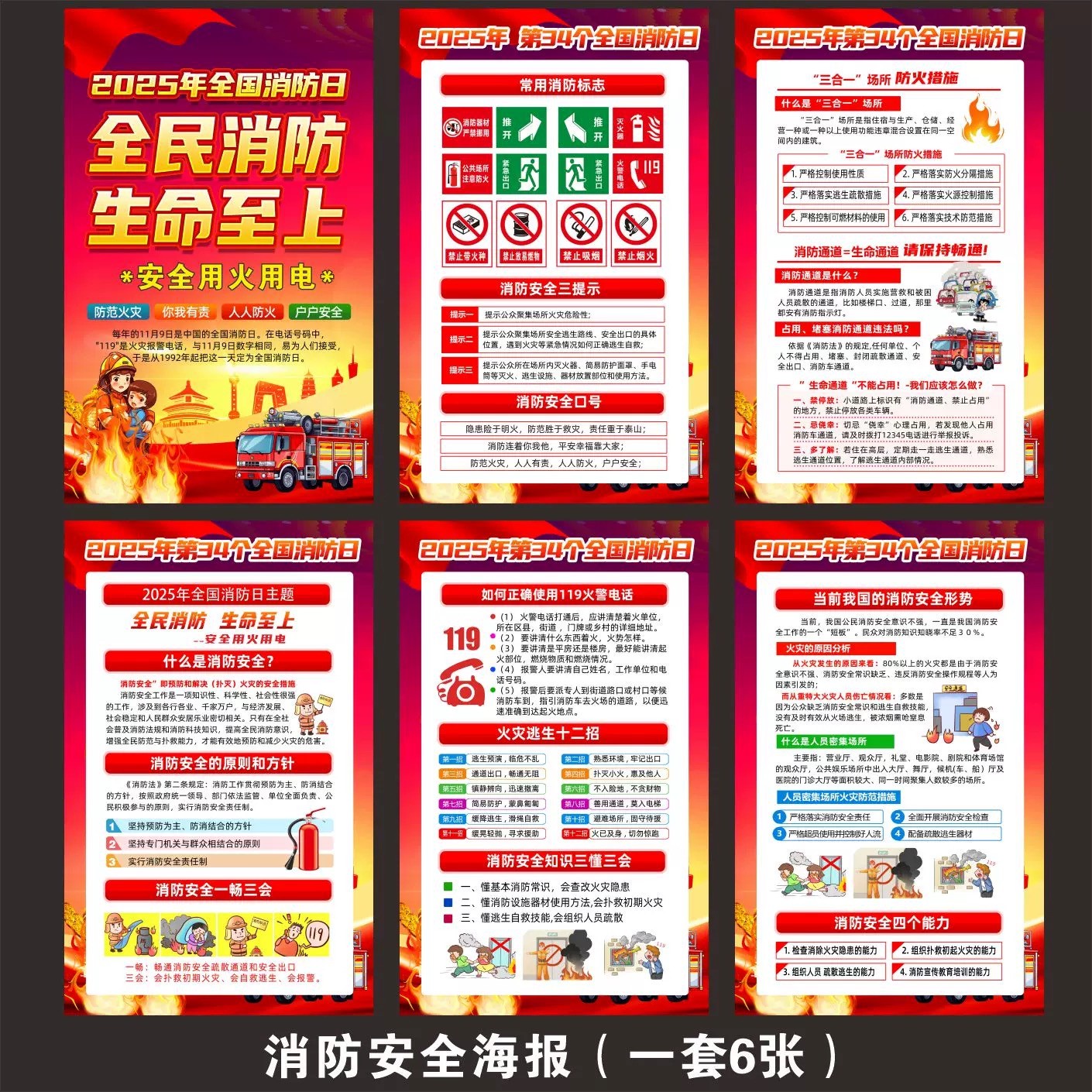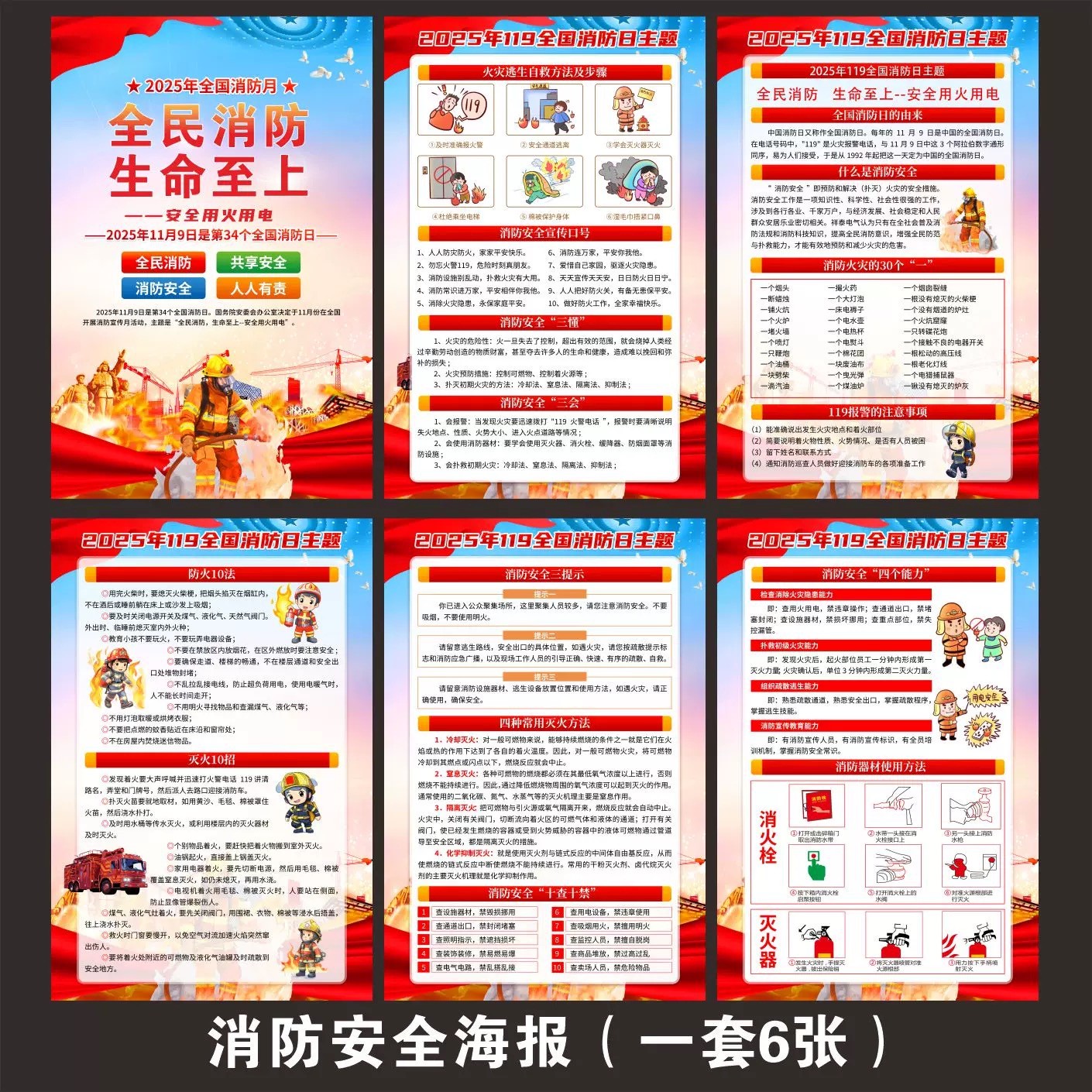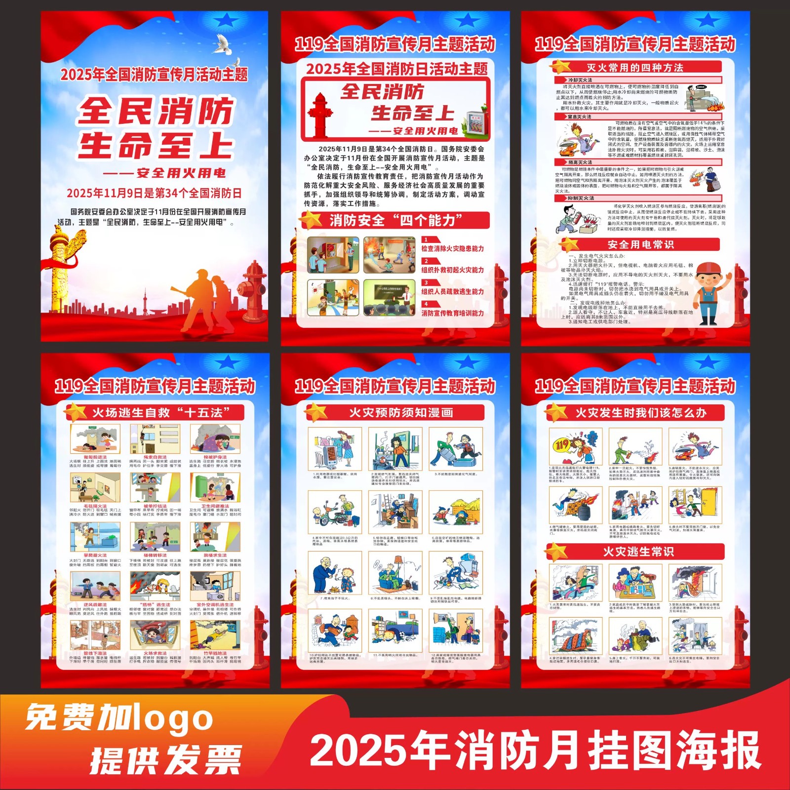 2025年消防月海报119全民消防日安全教育宣传展板活动宣传月挂图
